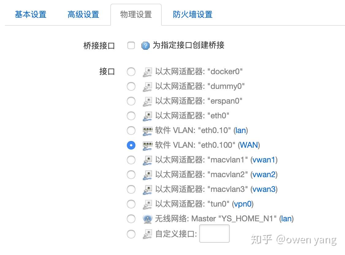WAN口设置到 eth0.100,即连接到VLAN100。